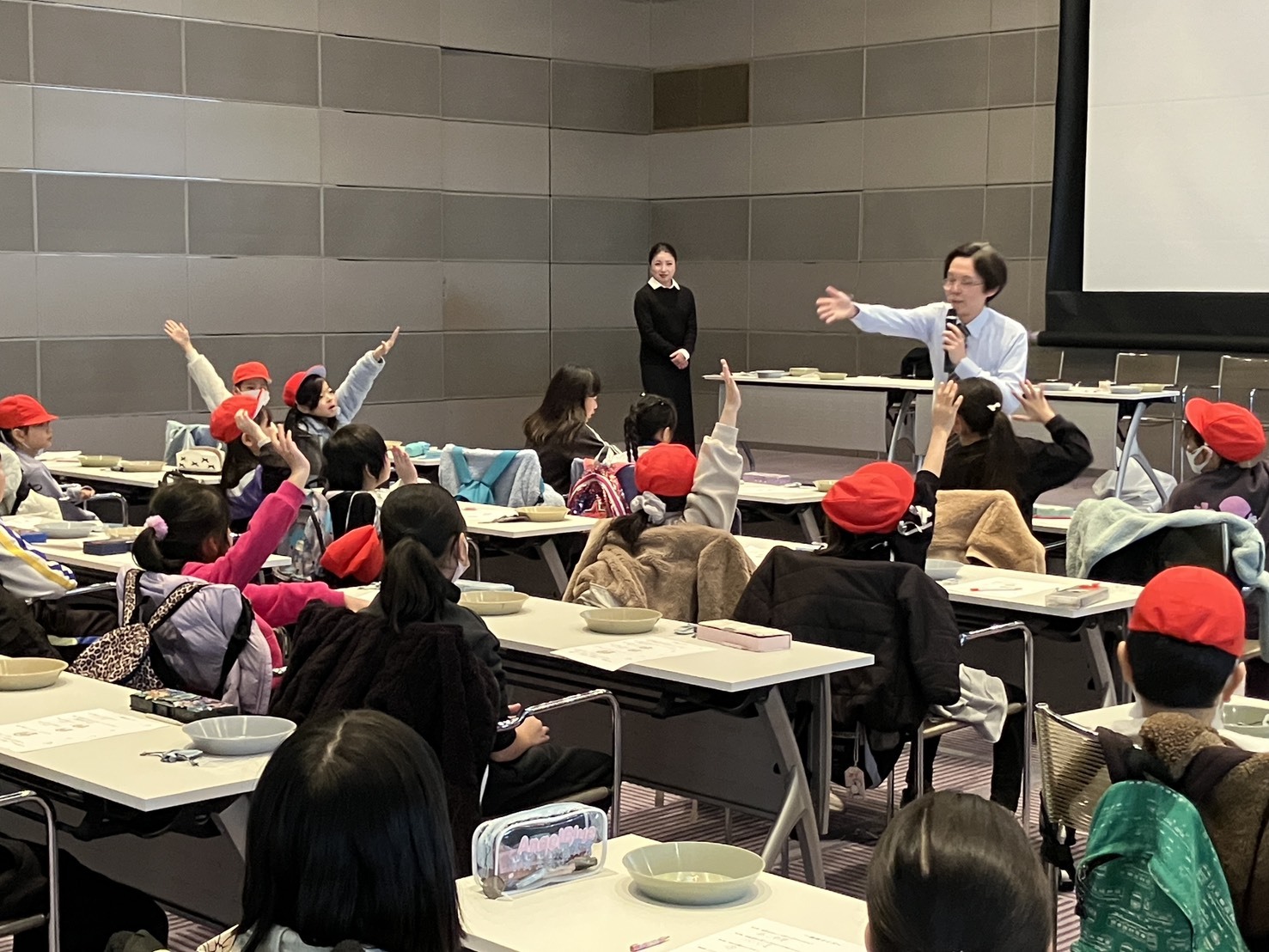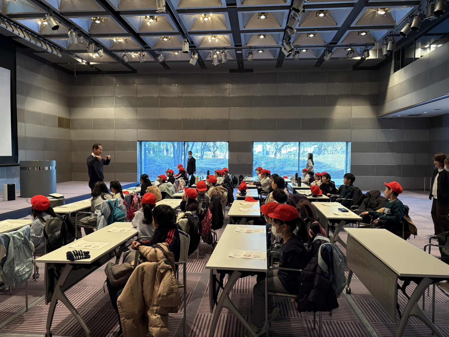 朝から和田岬小学校の元気いっぱいの3年生たちが到着し、社内は一気に明るく賑やかな雰囲気に。