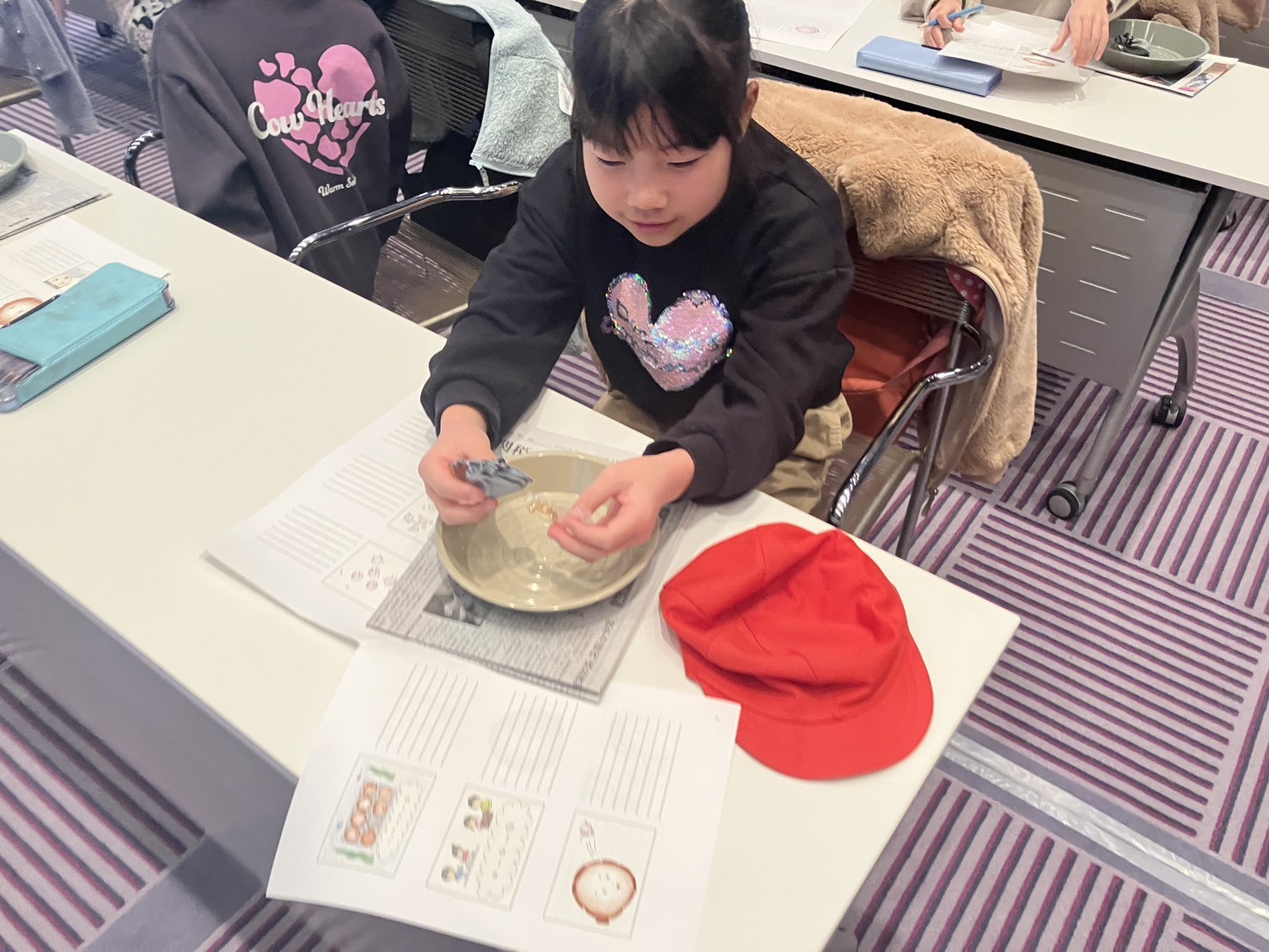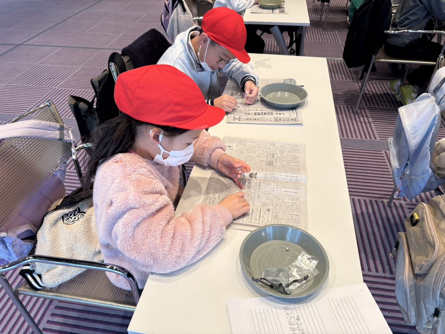 ブローチ作りが始まると、子どもたちは一斉に手元に集中。