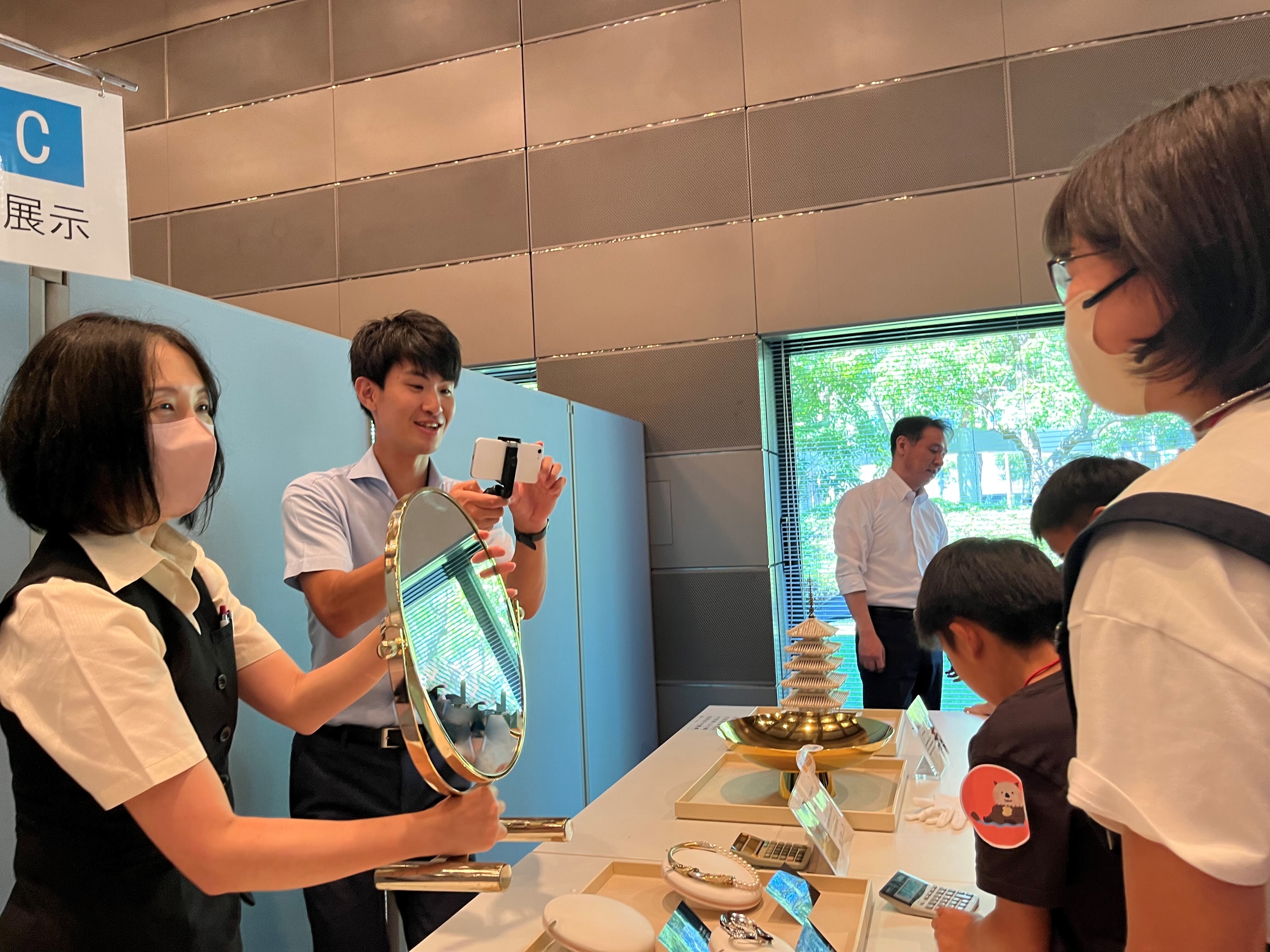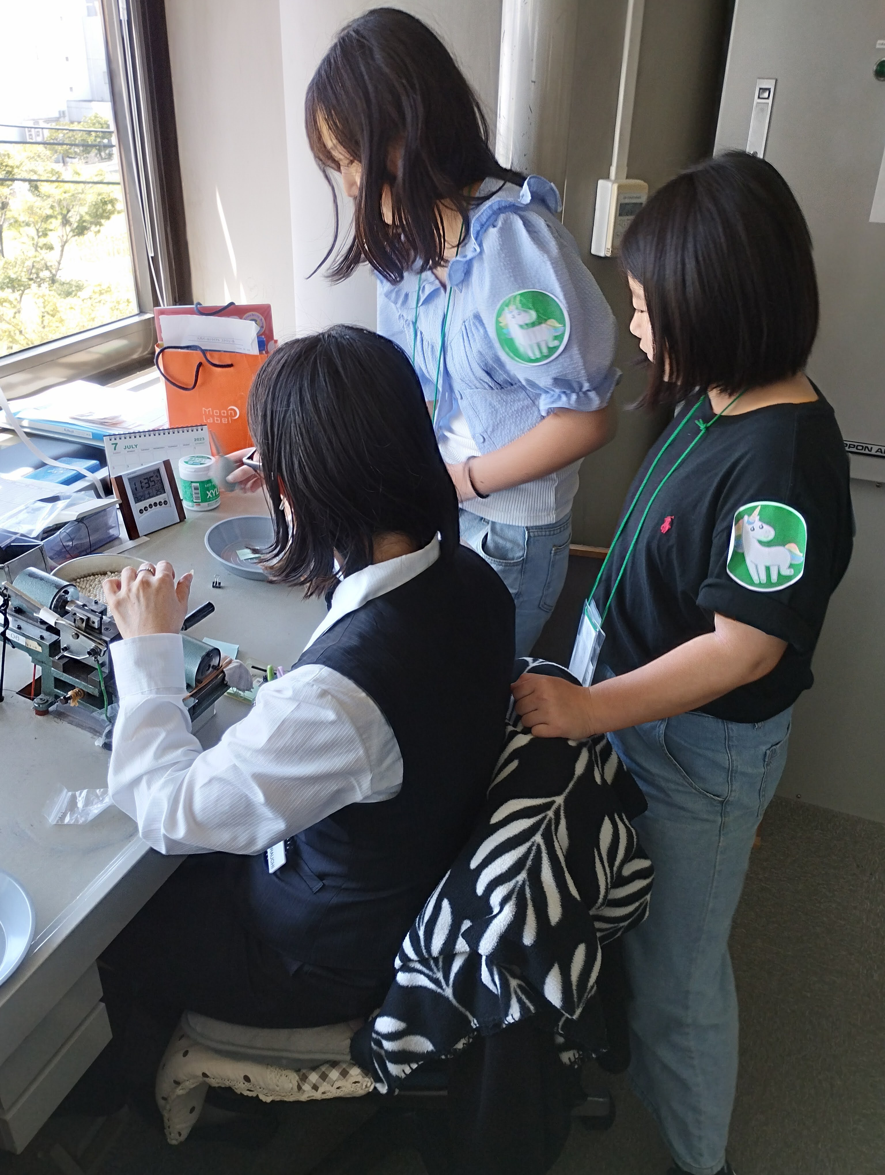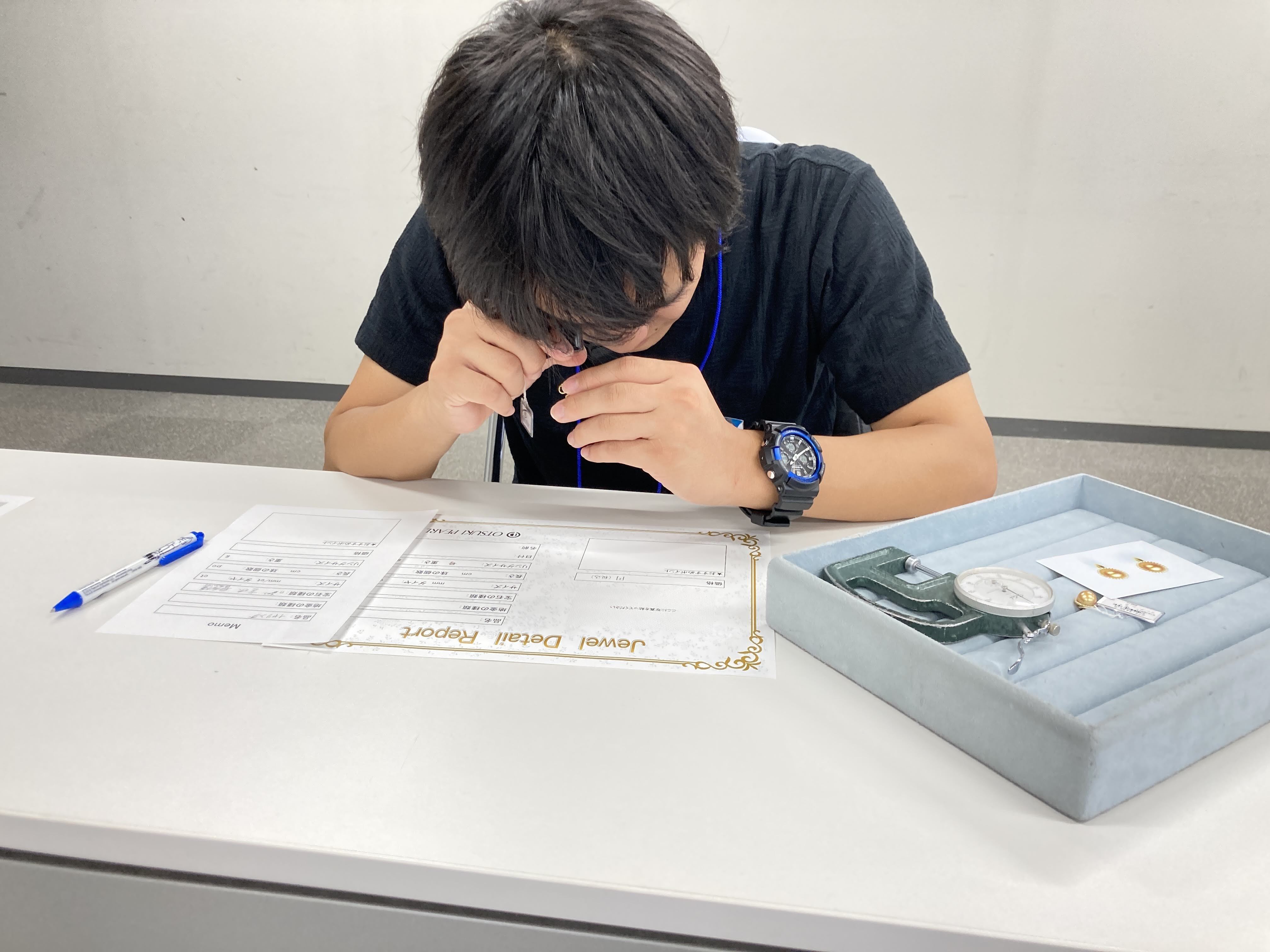 自分の誕生石を教えてもらったり、ゲージやルーペを使って商品の刻印を見たりしました。