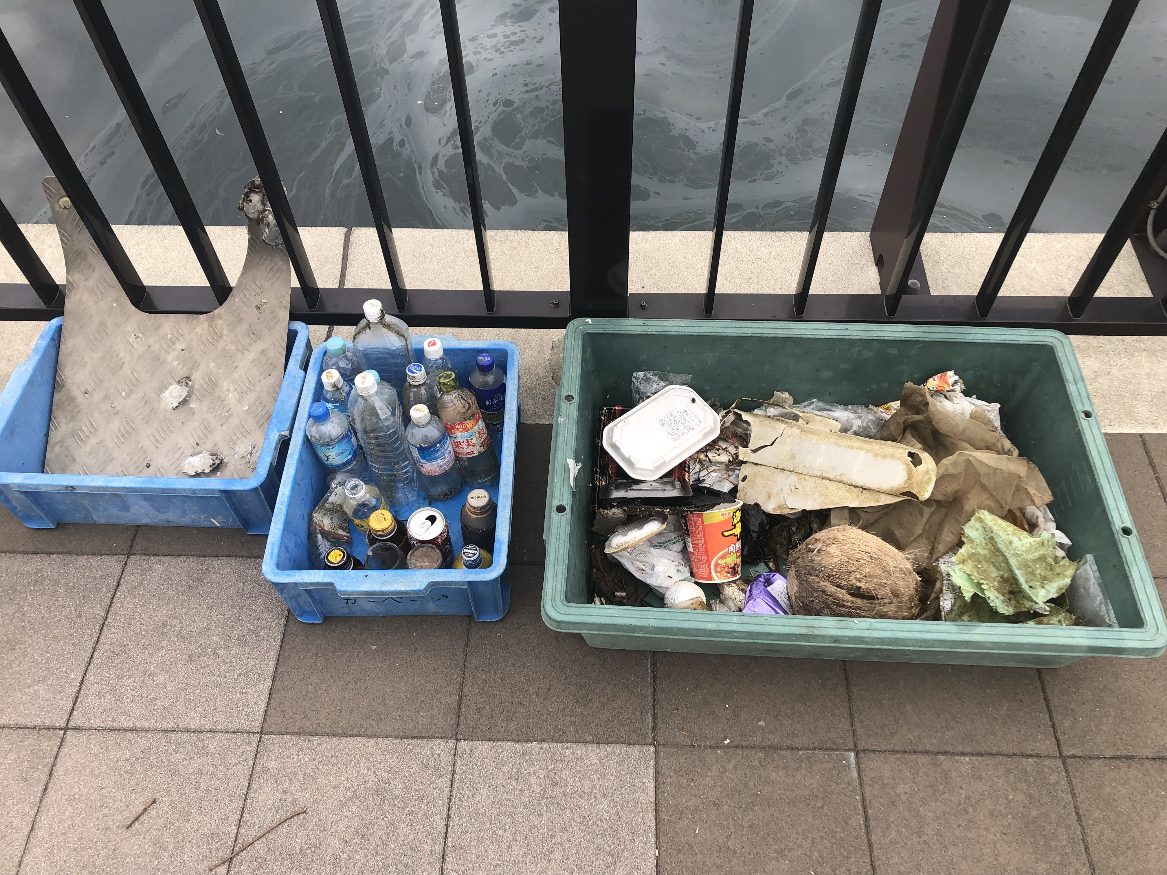 ポイ捨てをせずゴミ箱に捨てればこんなに兵庫運河に流れてくることはありません。